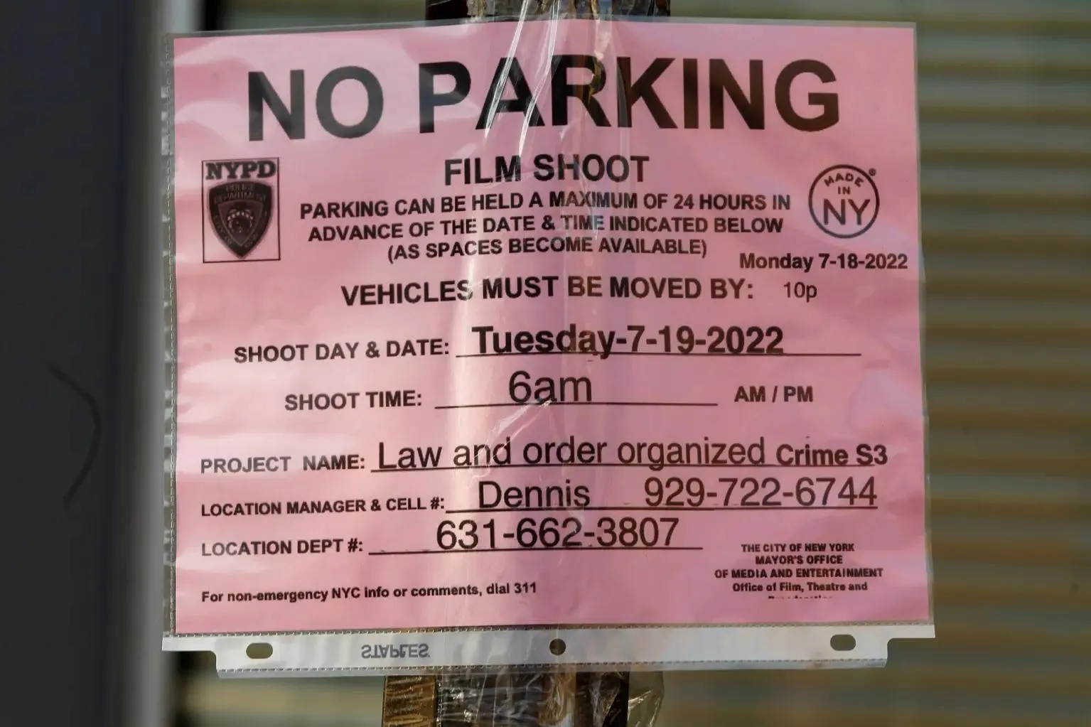 На вулиці, де знімали серіал, до ліхтарного стовпа була приклеєна листівка, у якій йшлося про те, що паркування навколо парку Макголрик на моменти зйомок варто припинити. Крім цього, вона закликала мешканців скаржитися місцевим законодавцям на те, "як зйомка нашого району витісняє вашу родину".