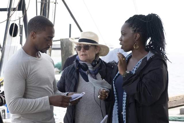 Кроме главных героев Сэма Уилсона и Баки Барнса, которых играют Энтони Маки и Себастиан Стэн, на фото можно увидеть Шэрон Картер (Эмили ВанКэмп) и сестру Сэма – Сару (Едиперо Одуйя).