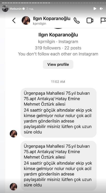 Жителі Туреччини просять про допомогу / Скриншоти зі сторіс Карема Бюрсіна