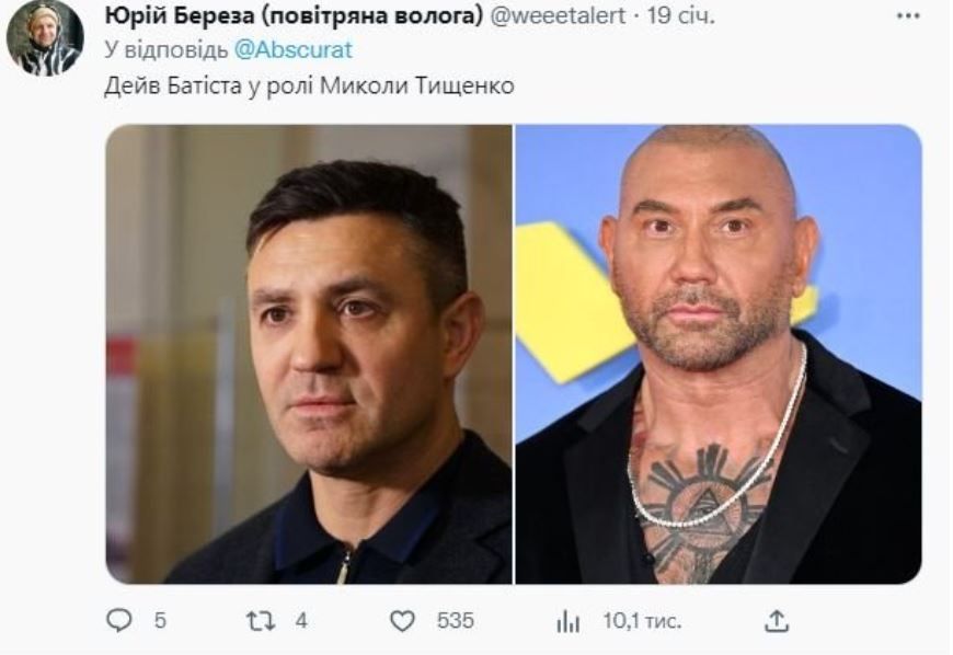 Віртуальний кастинг голлівудських акторів на ролі українських політиків / Скріни твітів